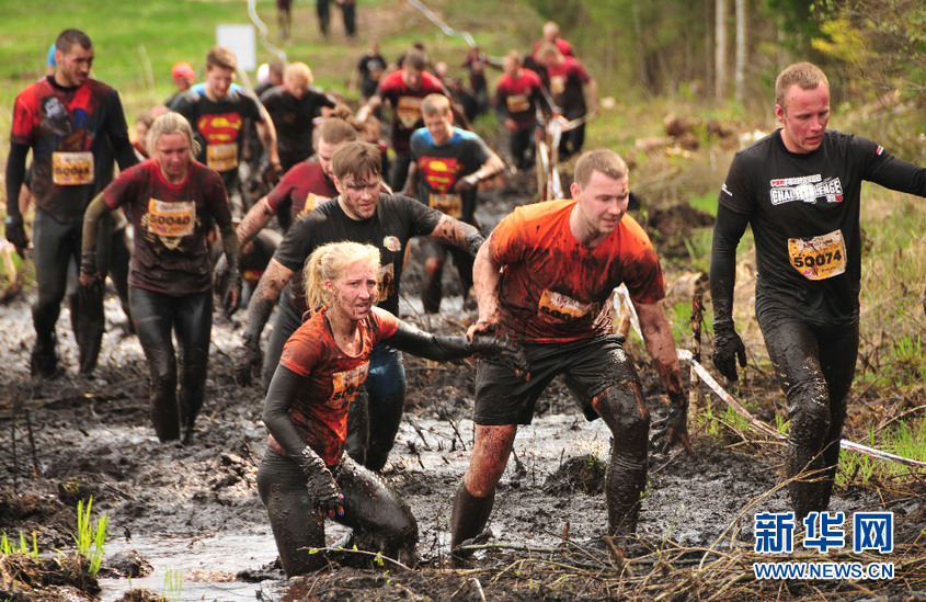 5月7日,在拉脱维亚克古姆斯市的“金马”运动中心,数百人参加了“强者越野”极限赛。新华网发(亚尼斯 摄)