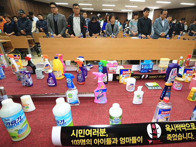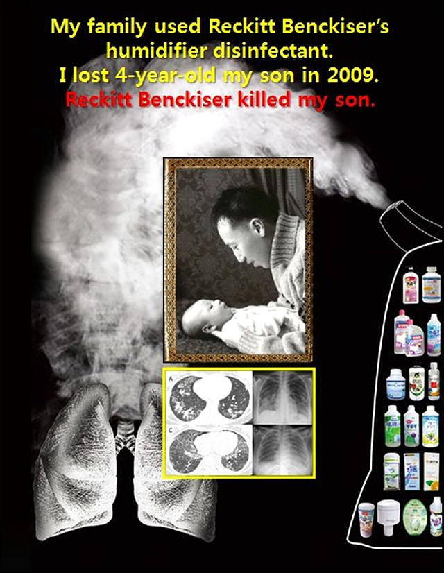 当时的调查发现,约七成死者都用过利洁时(RECKITT BENCKISER)等公司的杀菌剂。患者近几年平均每年使用加湿器4个月左右,每次加水时都添加杀菌剂,平均每月使用一瓶杀菌剂。