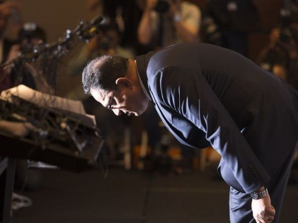 5月2日,韩国利洁时公司负责人萨夫达尔在新闻会上道歉。(图片来源:新华/美联)