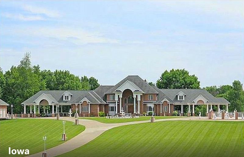 艾奥瓦州:该别墅面积约737平方米,5个卫生间,同时配有美食屋,会客餐厅等,主卧配有燃气暖炉,衣帽间等二楼建有观景区,可欣赏周边风光,市价约350万美元(约人民币2275万)。