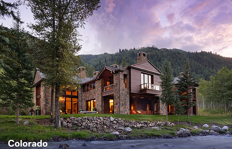 科罗拉多州:该别墅依山傍水,面积约1580平方米,8间卧室,13个卫生间,并带有特色客房和管家住所,市价约5000万美元(约人民币3.25亿)。