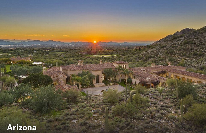 亚利桑那州:该别墅面积约2759平方米,8间卧室,10个卫生间,可欣赏迷人的日落风光,市价约3200万美元(约人民币2亿)。