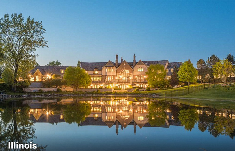 伊利诺伊州:该别墅是典型的欧洲风格建筑,面积约2787平方米,9间卧室,15个卫生间,湖水环绕,充满欧式风情,市价约1877.5万美元(约人民币1.22亿)。