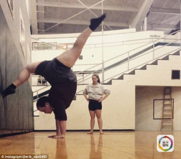 照片中,卡瓦诺轻松自若地展示各种高难度舞蹈动作:下腰、抬腿、腾空、倒立劈腿、脚尖旋转……动作到位,姿势优雅。