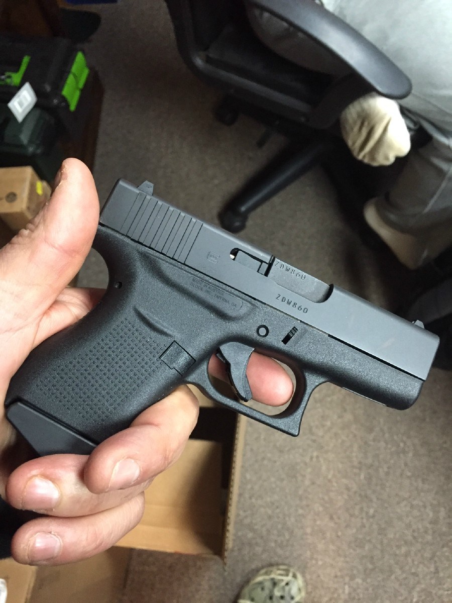 格洛克G43它适合任何手型的射手,不再是壮汉才适用的枪型。握把构型和表面花纹保证了良好的握持姿势。六发弹匣的下方,有一个方便退出弹匣的宽大底板。