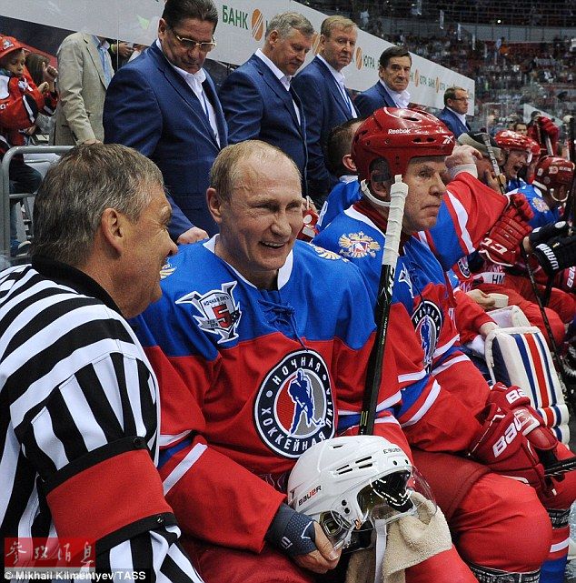 普京在冰球比赛中摔倒 瞬间脸红(图)