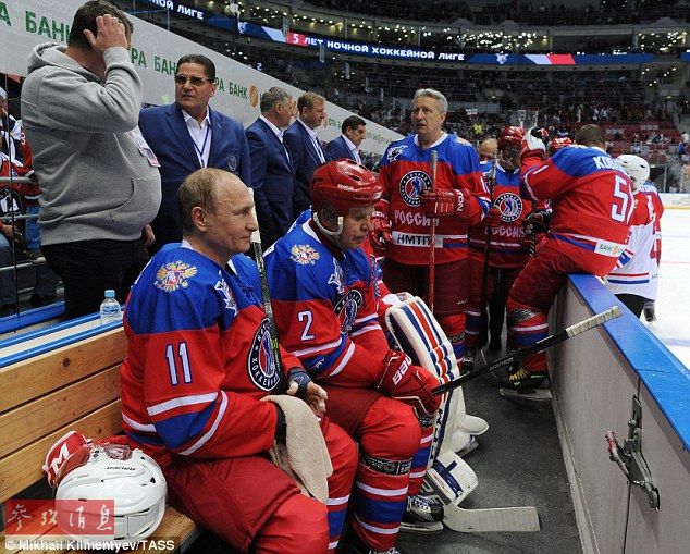 普京在冰球比赛中摔倒 瞬间脸红(图)