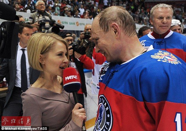 据悉,普京在2011年担任了组织联赛的责任,希望能够用一种方式在全国推广冰球比赛正规化。图为比赛结束后,普京接受俄罗斯体育记者访问。