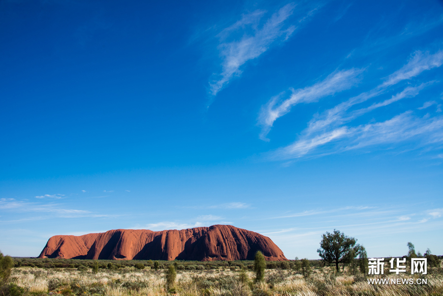 乌鲁鲁在一天中的不同时刻会呈现出不同颜色,这是白天的乌鲁鲁。新华网发(钱军摄)