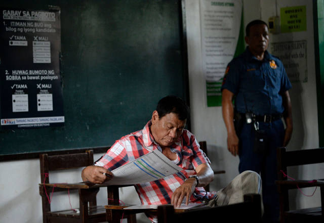 图为罗德里戈·杜特尔特在投票现场。