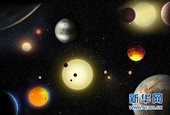 美国航天局5月10日公布的概念图显示开普勒太空望远镜确认的部分行星。新华社发