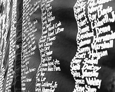 在美国密苏里州圣路易斯市,示威者打出列有因警察暴力执法而身亡者名字的横幅。 新华社发