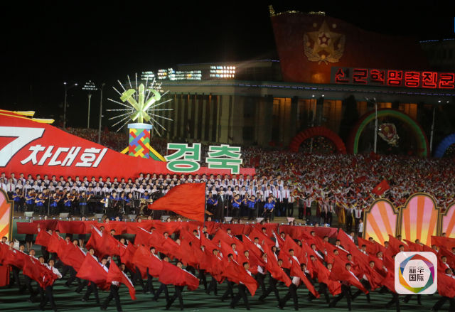 5月10日,朝鲜首都平壤金日成广场举行盛大活动,庆祝朝鲜劳动党第七次全国代表大会闭幕。(新华社记者陆睿摄)