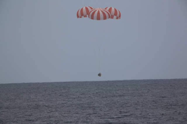 据美国航天局发表的一份声明,“龙”飞船当天从空间站脱离后,经过约5个半小时的飞行于美国东部时间14时51分(北京时间12日2时51分)落入加利福尼亚以西的太平洋海域,随后由太空探索技术公司打捞回收。