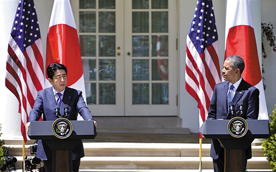资料图:奥巴马(右)与日本首相安倍晋三会见记者