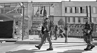 为应对恐怖主义威胁,欧洲议会日前通过了旨在加强欧洲刑警组织反恐能力的一系列新规。图为5月2日,在比利时布鲁塞尔国际机场外,军人正在巡逻。新华社发