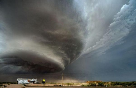 资料图:在以神秘著称的美国军事基地51区上空,一场超级风暴裹挟云层疯狂旋转,形状就像一个巨大的UFO。