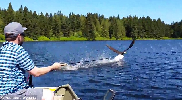 加夫妻湖边钓鱼 遭无耻吃货老鹰抢食(图)
