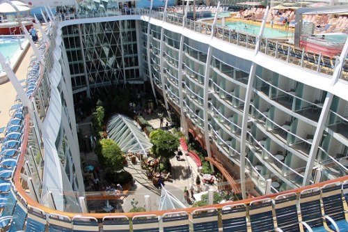 船上的设施还包括巨型攀墙、小型高尔夫球场、冲浪模拟器、浮动按摩池、赌场、可容纳1400人的剧院等。甲板上还辟有一个种植了12000种植物的中央公园。