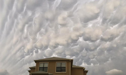 美国网友发布在德克萨斯州弗里斯克市的乳状云图片。