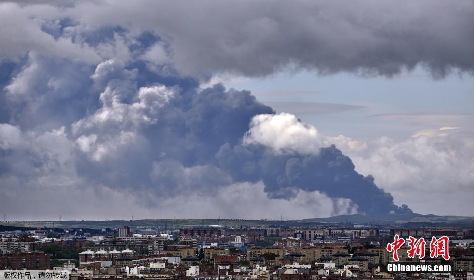 当地时间5月13日,西班牙马德里附近的塞塞尼亚镇内存放的数以百万计废弃轮胎起火,现场浓烟滚滚直冲云霄。