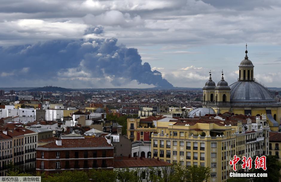 当地时间5月13日,西班牙马德里附近的塞塞尼亚镇内存放的数以百万计废弃轮胎起火,现场浓烟滚滚直冲云霄。