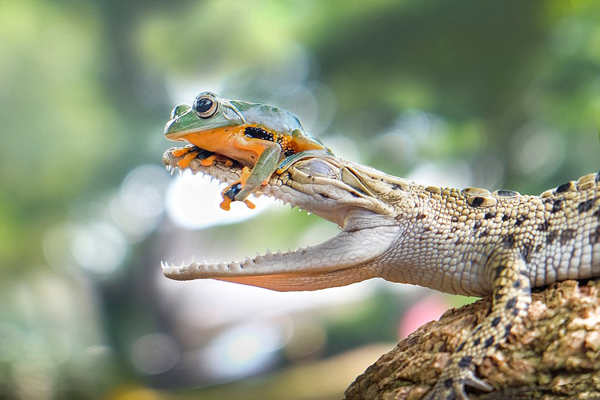 树蛙在咸水鳄嘴里栖息 罕见趣图蹿红网络(图)