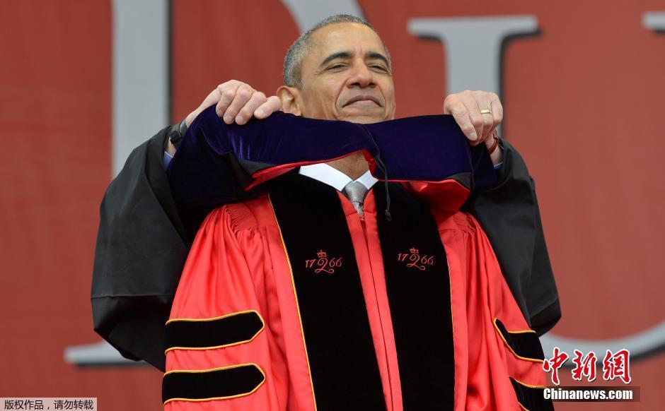 奥巴马出席罗格斯大学毕业典礼 获荣誉博士学位(组图)