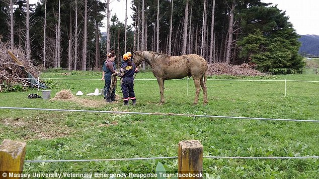 新西兰骏马误坠壕沟 救援队耗时4小时成功救出(组图)