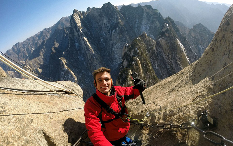 惊险! 巴西情侣勇敢挑战华山“长空栈道”(组图)