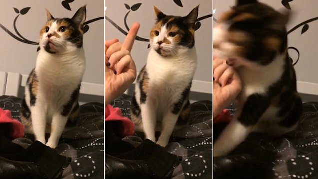 喵星人不满主人竖中指 主动出击捍卫尊严(组图)