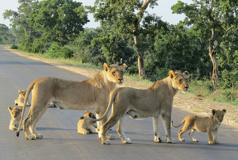 据英国《每日邮报》5月16日报道,近日,一名游客在游览南非克鲁格国家公园时,在路上拍摄到了有趣的一幕。镜头中,狮子一家8口慵懒地卧在公路中间,为游客们设置了可爱的路障。