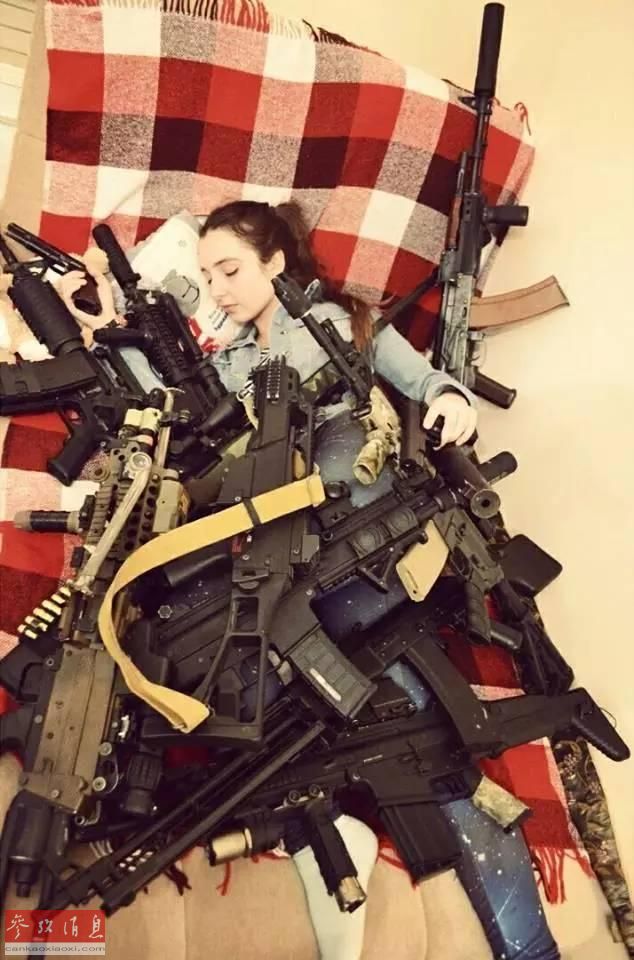 “拥枪入眠”的俄罗斯美少女网红枪迷(组图)