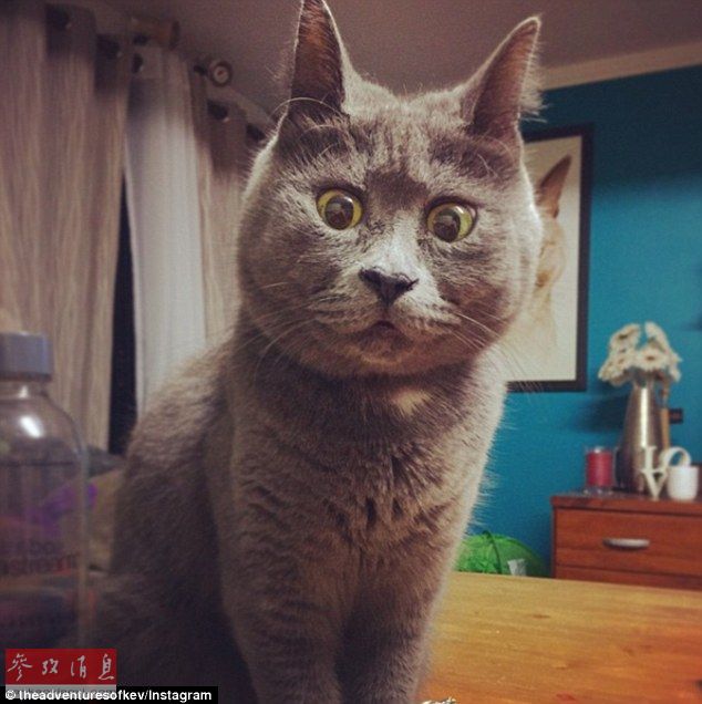 据英国《每日邮报》5月19日报道,一只名叫Kevin的俄罗斯蓝猫因为惊讶的神态在社交网站上走红。据报道,Kevin由于患有脑积水,导致部分丧失视力和听力,但是也因此有了特别的外表,它的主人描述它为“最有趣、最呆萌的小家伙”。