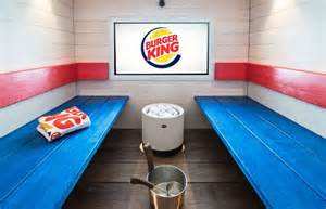 食客们在“汉堡王”桑拿房里汗流浃背的同时,可以享受到汉堡、薯条和饮料,既满足了口腹之欲,又妥妥地甩掉不少卡路里。蒸完桑拿后,“汉堡王”还为顾客提供浴袍和毛巾。