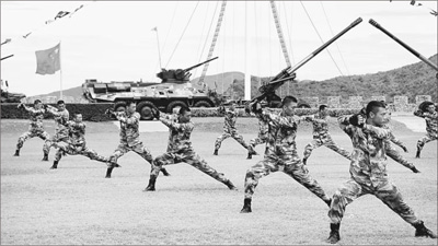 中国海军陆战队员进行军事技能展示。本报记者 杨 讴摄