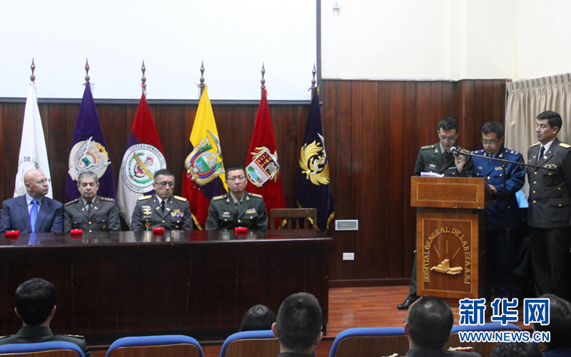 授勋仪式在厄瓜多尔三军总医院隆重举行,以表彰中国援厄医疗队李俊、谢志浩、张德安和陈文彬4名队员在厄工作期间为提高厄医疗水平和培训医务人员作出的重要贡献。