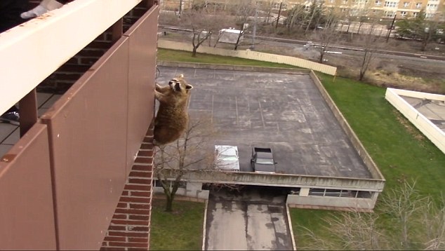 实拍加拿大狡猾母貉民宅10层阳台机智逃生过程(组图)