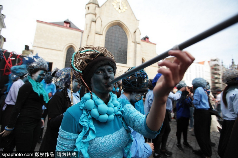 当地时间2016年5月21日,比利时布鲁塞尔,当地举行第9届Zinneke大游行,奇装异服引人围观。Sipaphoto