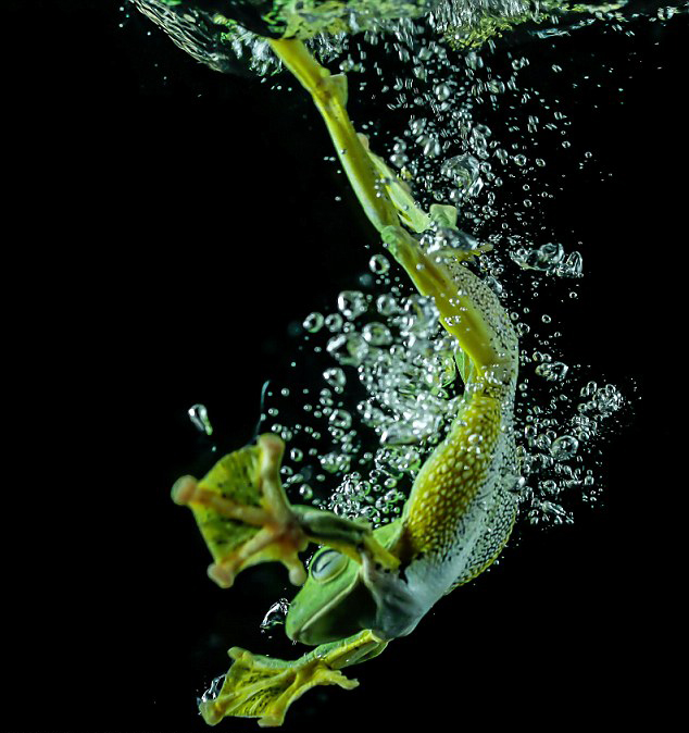 印尼摄影师抓拍树蛙跳水游泳生动过程(组图)