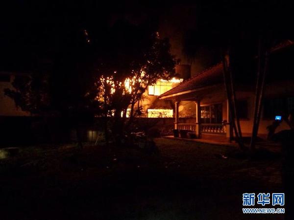 5月22日,在泰国北部清莱府拍摄的学校宿舍火灾现场。 新华社发