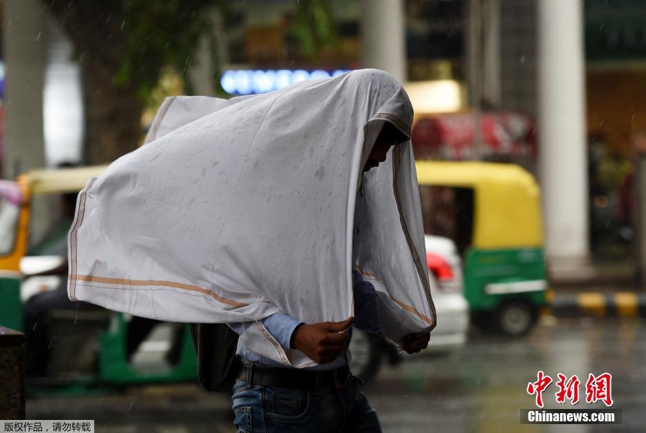 当地时间2016年5月23日,印度新德里,当地遭遇沙尘暴袭击,天空一片灰蒙蒙。大风夹杂沙土的侵袭给当地民众出行造成不便。
