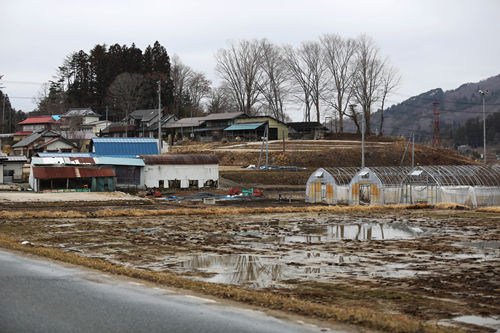 图为2015年3月7日拍摄的日本福岛县饭馆村拍摄的废弃的农田和房屋(新华社记者刘天摄)
