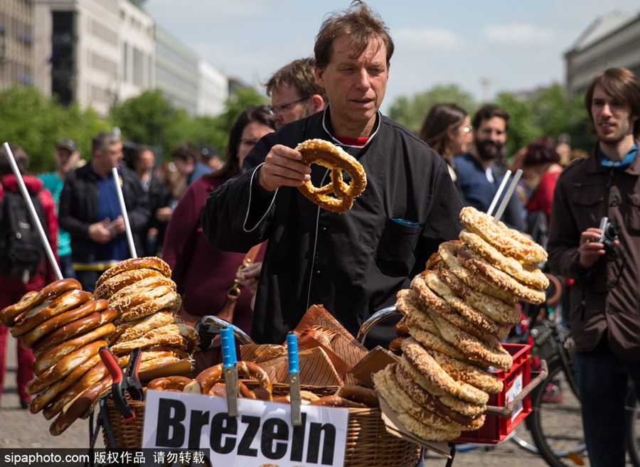 街头卖brezels的小商贩。(图片来源:Sipaphoto)