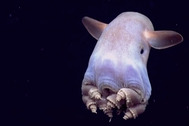 2014年,美国国家海洋和大气管理局在墨西哥湾拍摄到了一段神奇物种“小飞象章鱼”的视频。视频中,“小飞象章鱼”先是在岩石表面上徘徊,然后蜷缩着腿在海中缓缓游动,寻找多毛蠕虫和甲壳类食物。该品种章鱼的眼睛上方有耳状鳞片,令人惊奇。