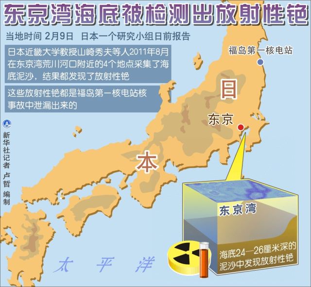 2012年2月9日图表:东京湾海底被检测出放射性铯新华社记者 卢哲 编制