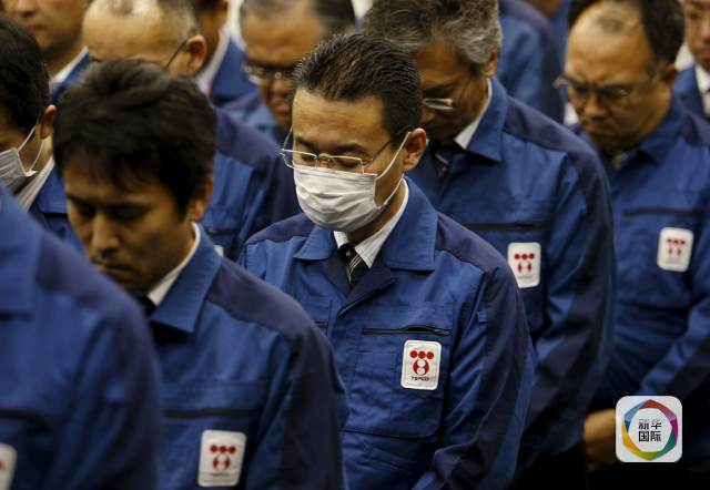 2016年3月11日,在日本东京,东京电力公司员工在下午2时46分默哀。新华社/路透