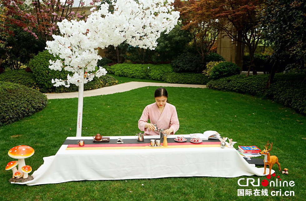 (二)《德国故事里的中国茶》——德国茶席 茶席灵感来自于中国茶文化走进格林童话故事,伴着贝多芬《春天奏鸣曲》的乐曲,将德国不锈钢器皿与中国传统茶器透过茶艺师的手得以融合使用。两个国家、两种爱好。德国啤酒是德国人日常的一种饮品,茶为中国国饮。酒显豪放,茶现清雅。“茶”与“酒”的交融,“水”与“火”的遇见。如茶席解说词中说道:城堡、花园、诗歌、童话,如果梦境中的童话要在现实中实现,我想,那一定在这里。德国茶席,带你走进《格林童话》之路,在童话梦境里穿梭,再遇童年。