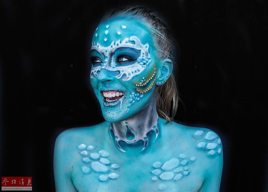 16岁女孩自学特效化妆 打造科幻人体彩绘(组图)