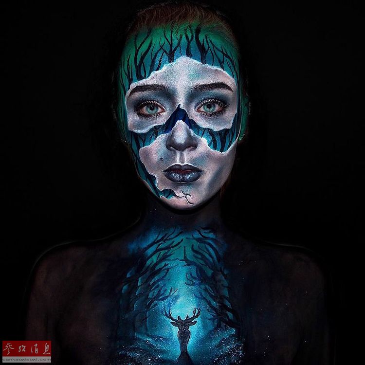 16岁女孩自学特效化妆 打造科幻人体彩绘(组图)